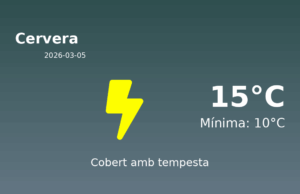 Predicció del Temps per a Cervera: 5 de març de 2026 Avui a Cervera, ens espera un dia amb condicions meteorològiques força intenses. Segons les...