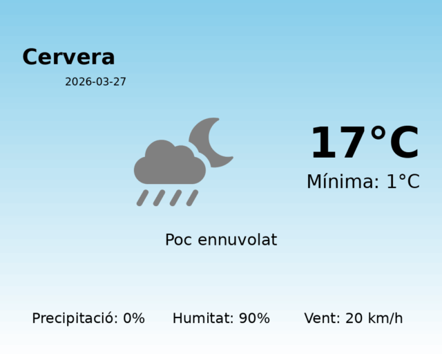 Predicció del temps per a Cervera – 27 de març de 2026