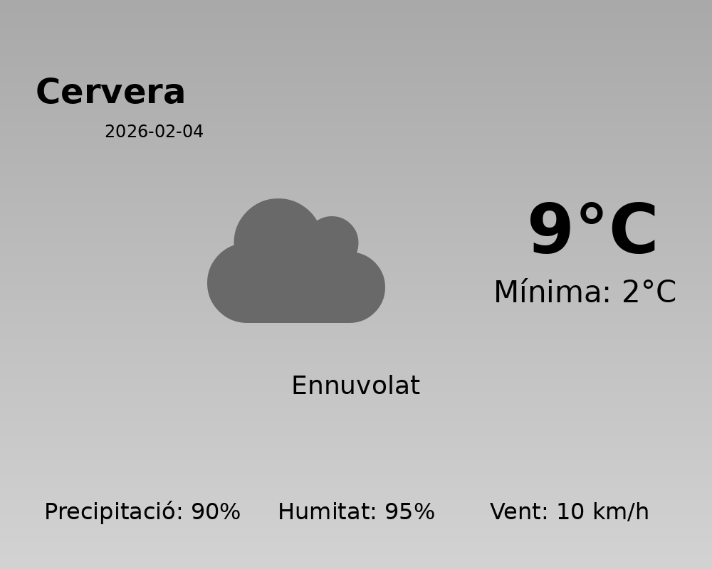 Avui, la ciutat de Cervera es prepara per un dia marcat per condicions meteorològiques inestables. Les previsions indiquen un clima fred i humit, amb una alta probabilitat de precipitacions al llarg del dia.