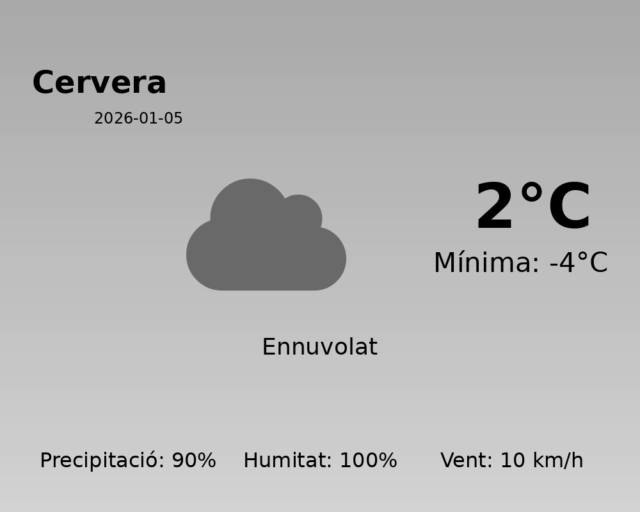 Predicció del Temps a Cervera per al 5 de gener de 2026