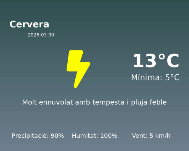 Predicció del Temps per a Cervera: 9 de març de 2026