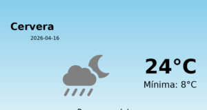 Predicció Meteorològica per a Cervera - 16 d'abril de 2026 Avui, els residents de Cervera poden esperar un clima primaveral i agradable. Les temperatures seran...