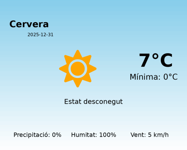 Predicció del Temps per a Cervera – 31 de Desembre de 2025